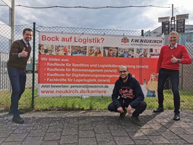„Wink mit dem Zaunpfahl“ Ja, wir haben noch alle Latten am Zaun. Darum hängen wir Plakate daran auf. Aber dafür braucht man gute Aufhänger- die hatten wir auch. Nach dem Grillfest Ende April am Stand FWN im Güterverkehrszentrum (GVZ) haben Geschäftsführer Sven Bley und Standortleiter Christoph Ostermann die Werbeplanen persönlich aufgehängt. Eine der ältesten Werbestrategien…