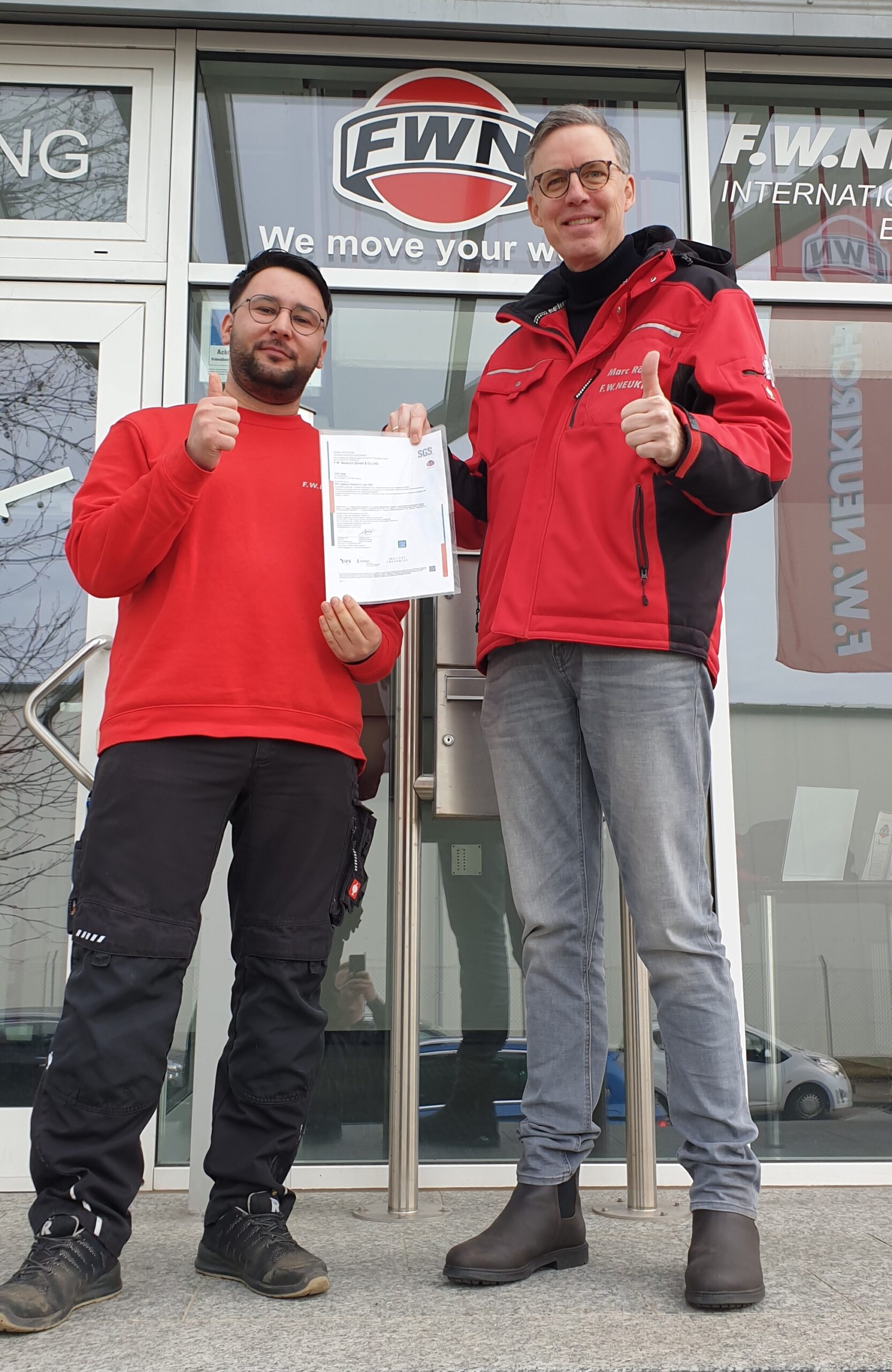 Unser QM-Beauftragter Marc Röpke und unser Lagerleiter Yahya Köle sind stolz auf das gesamte FWN-Team.