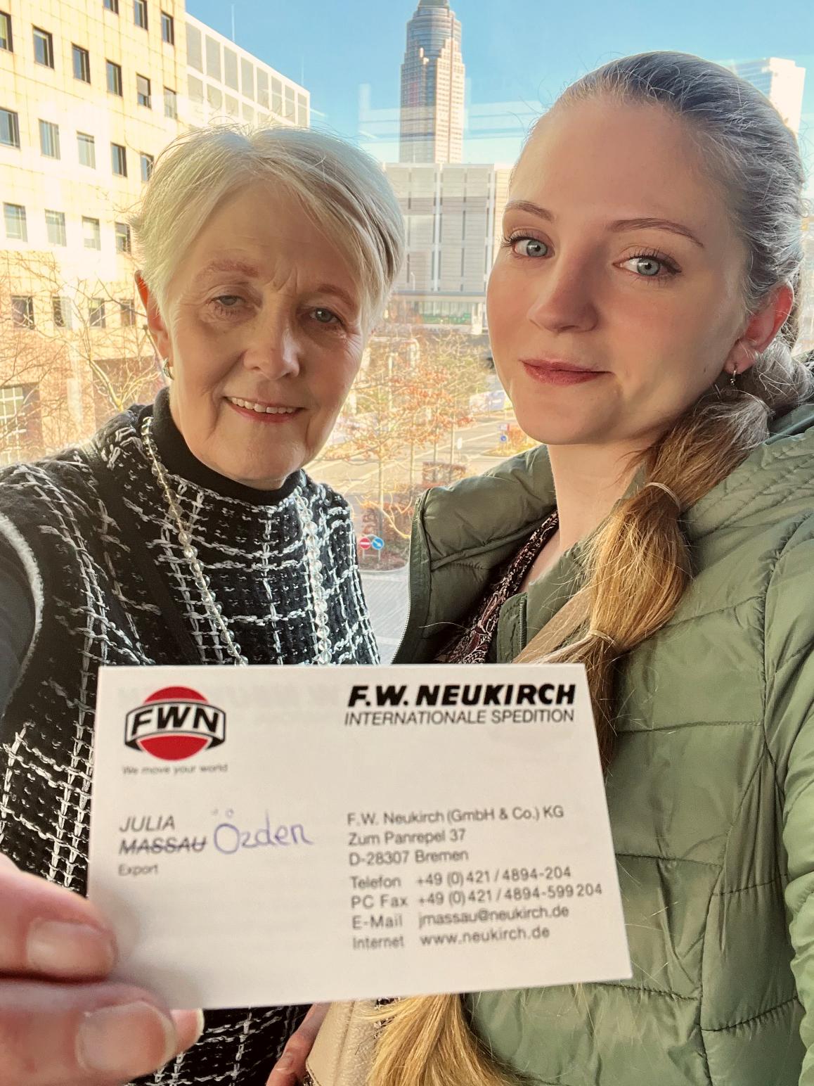In diesem Jahr waren Julia Özdem und Marein Pache vor Ort. Die beiden nutzten die Gelegenheit für den persönlichen Kontakt mit Kunden aus Übersee und um mit den hiesigen Lieferanten zu sprechen. Die beiden Spezialistinnen haben auf der Messe in Frankfurt seine Kunden aus Südamerika getroffen und auch die Lieferanten besucht, bei denen die Kunden bestellt haben. Außerdem lernten sie zukünftige Lieferanten kennen, um die Abwicklungsmodalitäten zu besprechen.