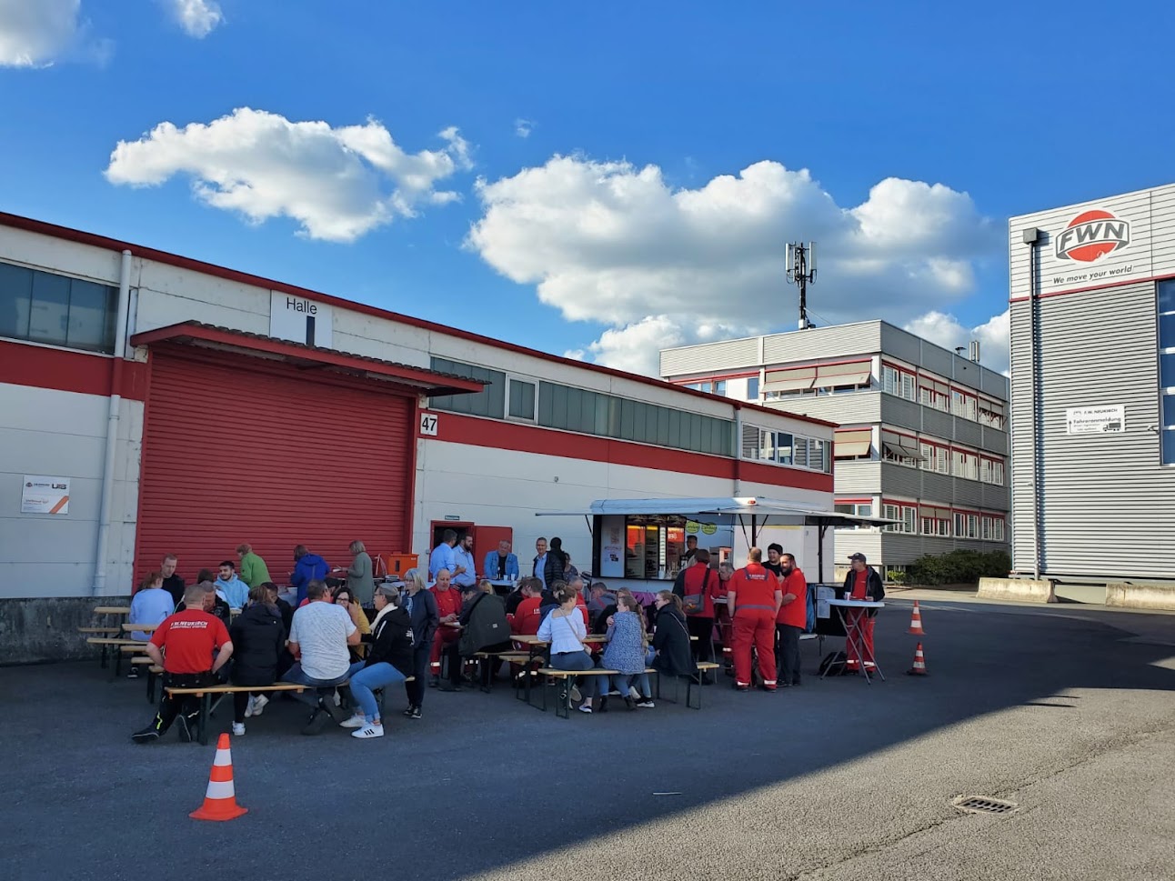 Es kamen natürlich auch die Kolleg*innen von den Standorten Sebaldsbrück und Oyten dazu. Gemeinsam haben wir also heute ab 15 Uhr zusammen auf dem Betriebsgelände gegessen & geplaudert, gelacht und gefreut.